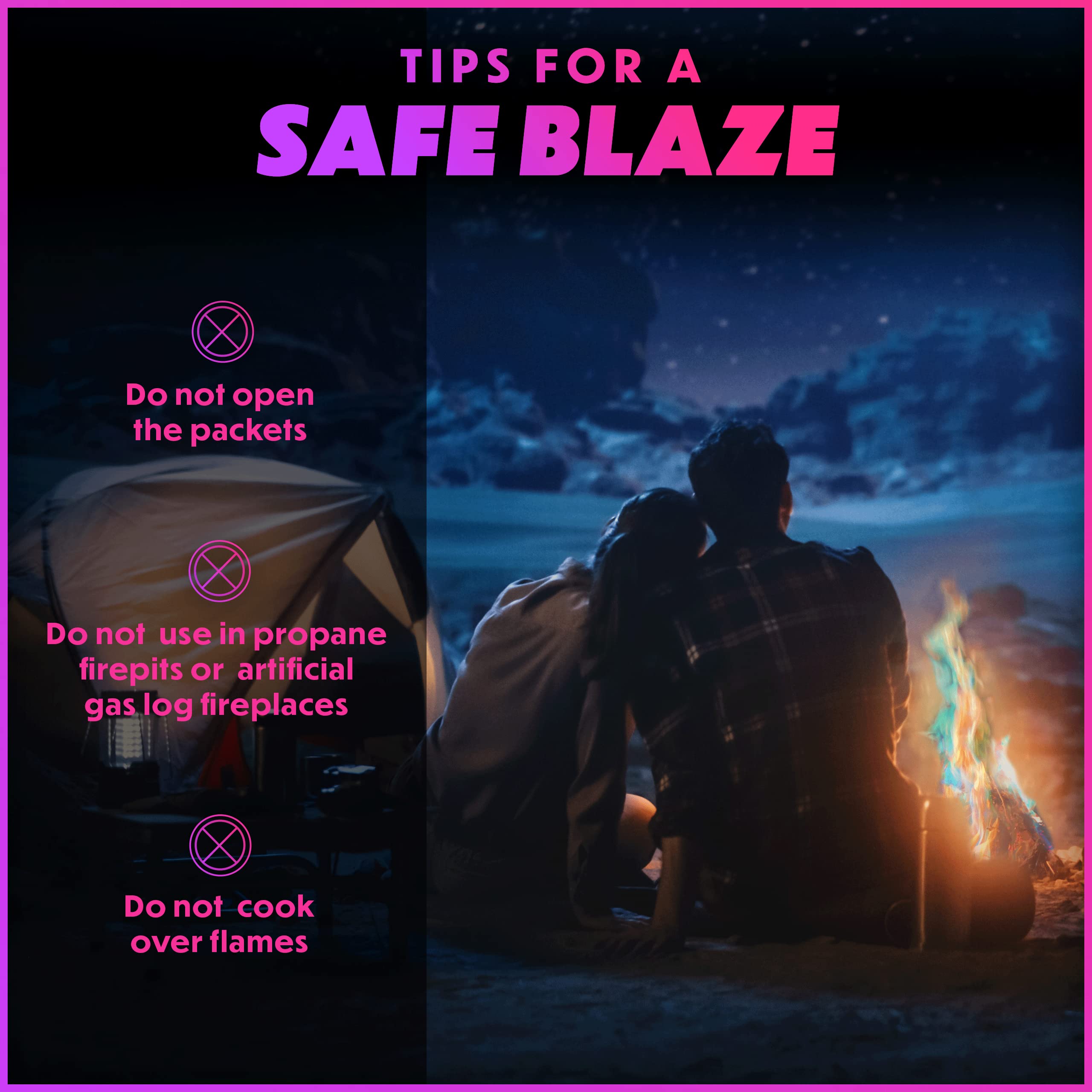 Just put 1-3 packets in your fire to enjoy instant, magic flames. Safety note: Packets cannot be used in propane or artificial gas log pits. Do not open the packet before throwing it into the fire