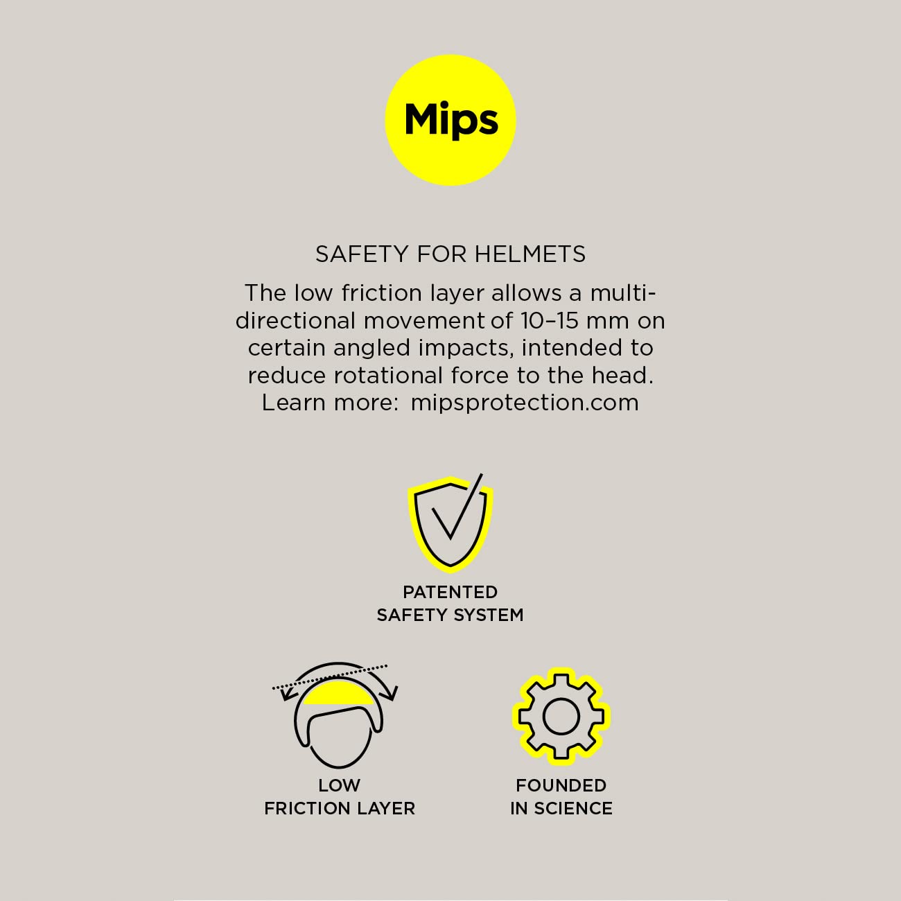 Features the MIPS System for additional protection; It’s a low friction layer mounted in the helmet that reduces the force transferred to the head during an angled impact, which occurs in most crashes