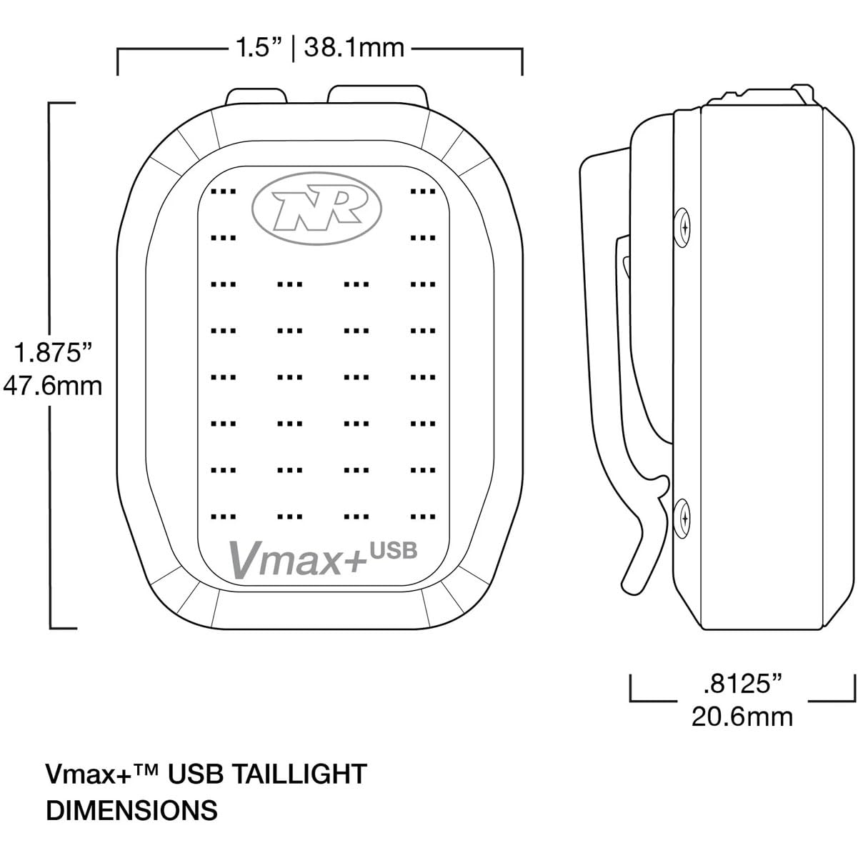Details: Vmax+ 150 is NiteRider’s first taillight featuring COB (Chip-on-Board) LEDs, which for cyclists means it packs more punch in a smaller, more compact package. Its feather-like light weight makes it perfect as a wearable safety light—easily clipping onto straps, belt loops, and more. Features Daylight Visible Flash (DVF) technology as well as Group Ride Mode where you can be seen without distracting fellow cyclists’ attention from the pavement or dirt. The USB rechargeable Vmax+ meets all required FL1 Standards for impact testing and dust/water resistance.